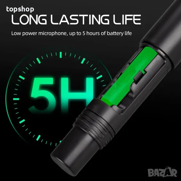 Този продукт е оборудван с микрофон с ниска мощност, а животът на батерията е подобрен, до 8 часа живот на батерията. Подходящ за различни сценарии, като например: семейно караоке, конферентни речи, сватбени тържества и др.