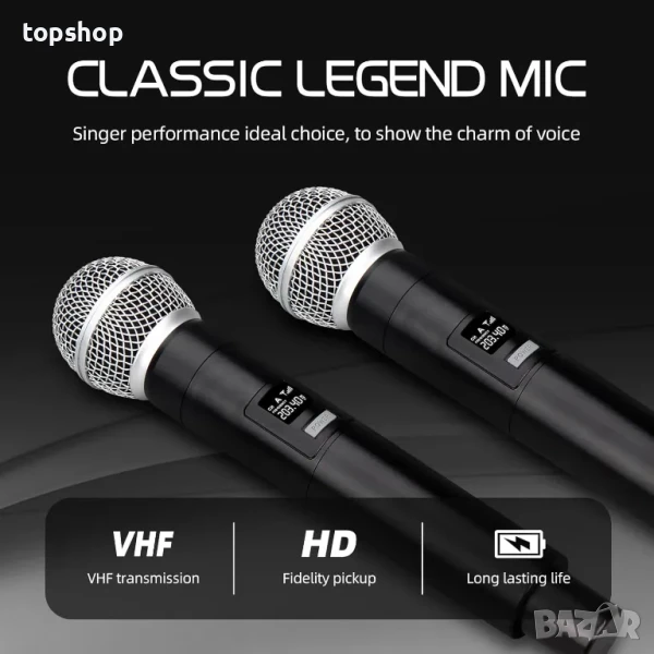 Тази безжична микрофонна система използва усъвършенстван VHF чип против заглушаване, който може ефективно да екранира шума, да предотврати виенето и да възстанови доброто качество на звука. Кардиоиден насочен приемник, който може да бъде насочен към основния източник на звук за улавяне дори в шумна среда, осигурявайки ясни вокали.