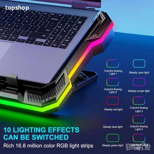 охлаждаща подложка за лаптоп с RGB светлини за лаптопи 14 - 19 инча с 8 регулируеми височини...