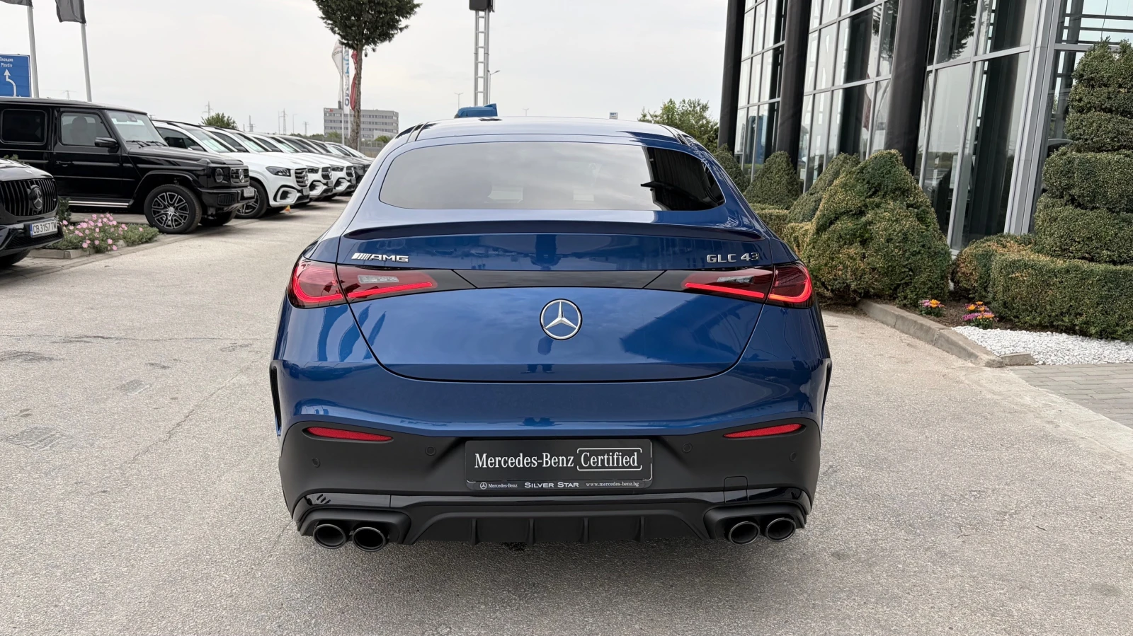 Цвят: 970 спектрално син Тапицерия: 651 синт. кожа ARTICO / микрофазер MICROCUT AMG, черно 897 Безжично зареждане за мобилни устройства H64 Декоративни елементи с метализирана структура 851 Топло- и шумоизолационно акустично стъкло 20U Подготовка за цифрово предаване на ключа 242 Ел. регулируема предна дясна седалка с памет 319 Арки на калниците в цвета на купето L6J AMG Performance волан в кожа напа B01 Технология 48 V 7U3 Спортни седалки P53 ENERGIZING AIR CONTROL 587 Амбиентно осветление с проектиране логото на марката RVM Алуминиеви джанти AMG 20'' (50, 8 см), дизайн 10 двойни спици P17 Пакет " KEYLESS-GO комфорт" 900 Пакет " Хром" U34 Табло и горни панели на вратите в кожа ARTICO с напа оптика 351 Mercedes-Benz система за аварийни повиквания 318 DIGITAL LIGHT 207 Дигитална екстра: Активен асистент за дистанция DISTRONIC Y05 Обезопасителни колани в червено U19 Дигитална екстра: MBUX Добавена реалност за навигация 776 Уширения на калниците за AMG джанти 382 Комуникационен модул за услугите Дигитални екстри (5G вариант) 14U Пакет " Смартфон интеграция" 88B Пасивно напомняне за хора в автомобила 17U Android Auto U95 AMG спойлер 464 Дисплей за водача 2U1 Жалузи на радиаторната решетка 243 Активен асистент за лентата за движение 580 Автоматична климатична инсталация THERMATIC 287 EASY-PACK сгъваеми облегалки на задните седалки 16U Apple CarPlay 500 Ел. сгъваеми външни огледала 345 Чистачки със сензор за дъжд 235 PARKTRONIC вкл. Активен асистент при паркиране 889 KEYLESS-GO 528 MBUX мултимедийна система U10 Автоматично деактивиране на фронталната въздушна възглавница за пътника до водача 871 HANDS-FREE ACCESS 275 Пакет " Мемори" 896 Дигитална екстра: Дигитален ключ в смартфона U01 Индикация за статуса на коланите за задните места в инструменталния панел B06 Спирачни апарати, лакирани в сребристо 504 Асистент за лимита на скоростта 325 Централно разположена въздушна възглавница K15 Сервизен интервал 15. 000 км 537 Цифрово радио 04U Прозрачен преден капак 502 Безплатни актуални картови данни за период от 3 години от дата на първа регистрация 33U Дигитална екстра: Дистанционни услуги Plus D04 Удължена гаранция (2+3 години или 200 000 км) U22 Ел. лумбална опора за предните места, 4-посочна PTF Mercedes-AMG интериор 51U Таван в плат, черен 891 Амбиентно интериорно осветление 670 Функция остатъчна топлина (REST) 79B Подготовка за дигитално радио 772 AMG оптичен пакет 1B3 Комуникационен модул (ECE) 868 Централен дисплей 421 AMG SPEEDSHIFT MCT 9G 894 Амбиентно осветление Plus 876 Пакет " Интериорно осветление" 8U8 i-Size система за закрепване на детски столчета 824 Допълнителни компоненти за държави със студен климат 01U Дигитална екстра: Подготовка за Навигационни услуги 241 Ел. регулируема предна лява седалка с памет 252 Централно огледало с автоматично затъмняване 459 AMG RIDE CONTROL окачване 367 Дигитална екстра: Подготовка за Live Traffic Information 873 Ел. отопление на предните седалки 5B0 Подготовка за DISTRONIC PBG Дигитална екстра: MBUX Навигация Premium 893 KEYLESS-GO Start/Stop 201 Завиваща задна ос 258 Активен спирачен асистент 42U Подготовка за проекционна функция, символи PUF Mercedes-AMG екстериор P60 Пакет " AMG нощ" , екстериор P49 Пакет " Огледала" 310 Двойна поставка за бутилки и чаши 853 Озвучителна система Advanced 234 Асистент за мъртвия ъгъл 942 Пакет " Комфортно товарно отделение" 840 Подсилено затъмнени тонирани задни стъкла 501 360° камера 475 Система за следене налягането в гумите 321 Скенер за пръстов отпечатък 628 Асистент за адаптивни дълги светлини PLUS B59 Програми за шофиране DYNAMIC SELECT U45 AMG лайсни на праговете със светещ надпис " AMG" и сменяема 