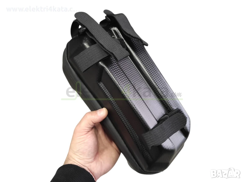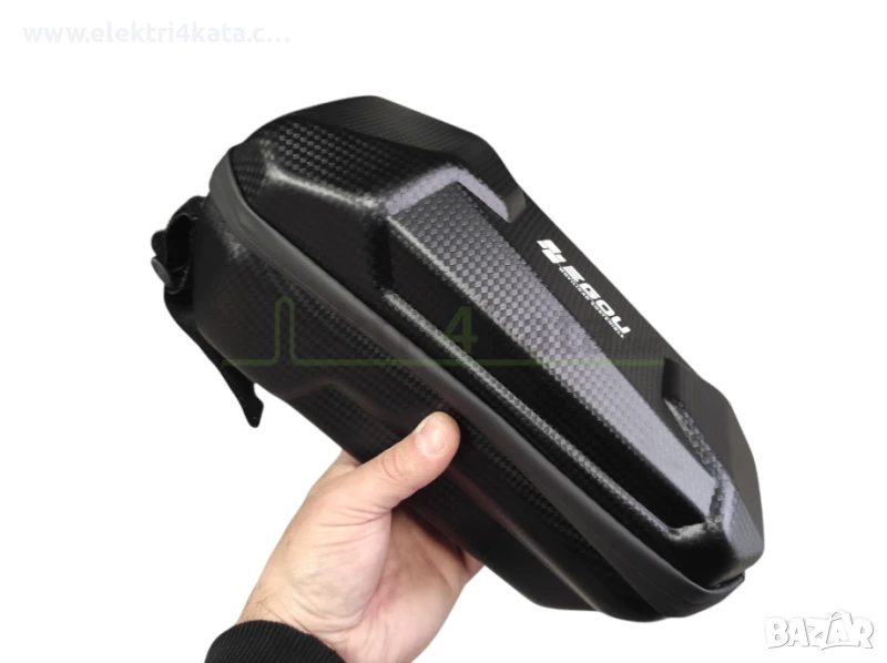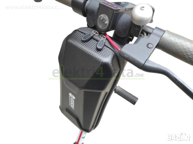 Чанта за тротинетка Карбон е водоустойчива с карбонов дизайн. Чантата се монтира на кормилото и ви предлага лесен достъп до най-необходимите ви вещи – телефон, зарядно, портфейл, ключове и др. Можете да я използвате върху почти всеки модел тротинетка.