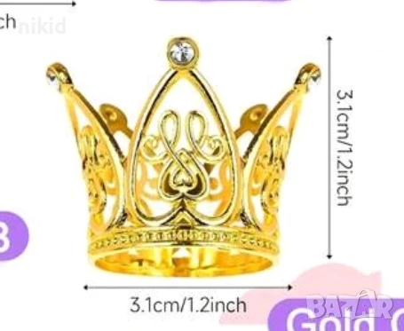 Малка корона златиста с камъче и обърнато сърце метална за украса декор на торта парти → Обява 50555068