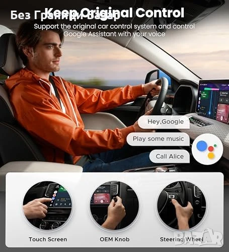 Съвместим с Android 12+ и над 800 модела автомобили с OEM Android Auto