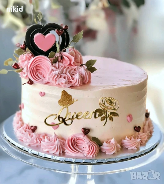 Queen с пеперуда и роза надпис акрил топер декор украса за торта рожден ден кралица → Обява 50555513