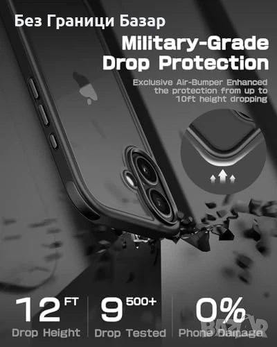 Нов Калъф за iPhone 16, Ултра Тънък Хибриден, Удароустойчив кейс Айфон