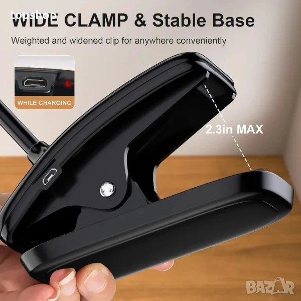НОВА Зареждаема с батерия 1800mAh 40ч. ЛЕД настолна лампа с щипка DEEPLITE Т17. 3 цветови режима