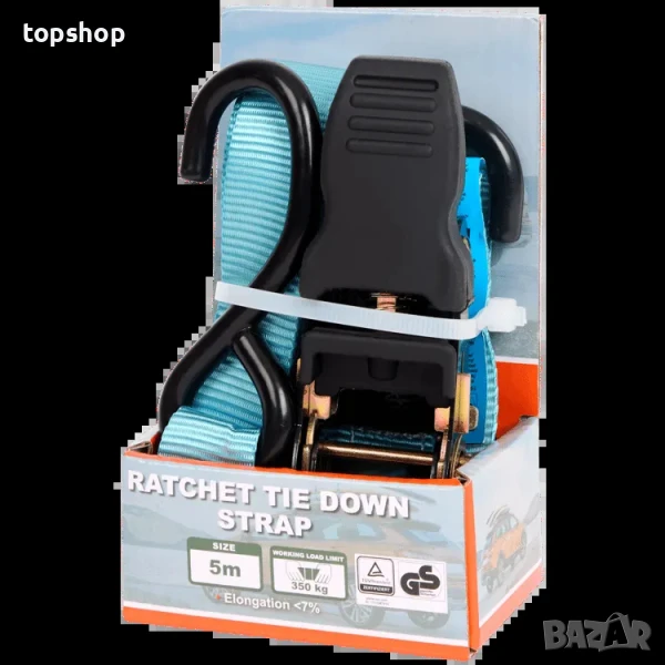 Колан за закрепване с тресчотка + 2 кукички 5 метра - 350кг → Обява 50555696