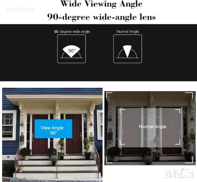 Широк ъгъл на гледане: 90-градусов широкоъгълен обектив ви позволява да видите по-голяма картина, без да пропускате гости.