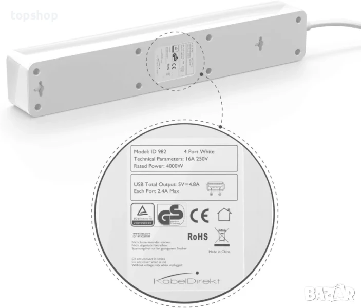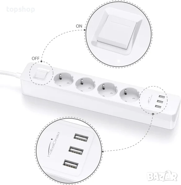 Разклонител KabelDirekt 4 гнезда, 3 USB порта, GS и TUV, защита от пренапрежение, снимка 1 - Друга електроника - 50555706 Разклонител KabelDirekt 4 гнезда, 3 USB порта, GS и TUV, защита от пренапрежение, снимка 2 - Друга електроника - 50555706 Разклонител KabelDirekt 4 гнезда, 3 USB порта, GS и TUV, защита от пренапрежение, снимка 3 - Друга електроника - 50555706 Разклонител KabelDirekt 4 гнезда, 3 USB порта, GS и TUV, защита от пренапрежение, снимка 4 - Друга електроника - 50555706 Разклонител KabelDirekt 4 гнезда, 3 USB порта, GS и TUV, защита от пренапрежение, снимка 5 - Друга електроника - 50555706 1/5