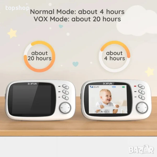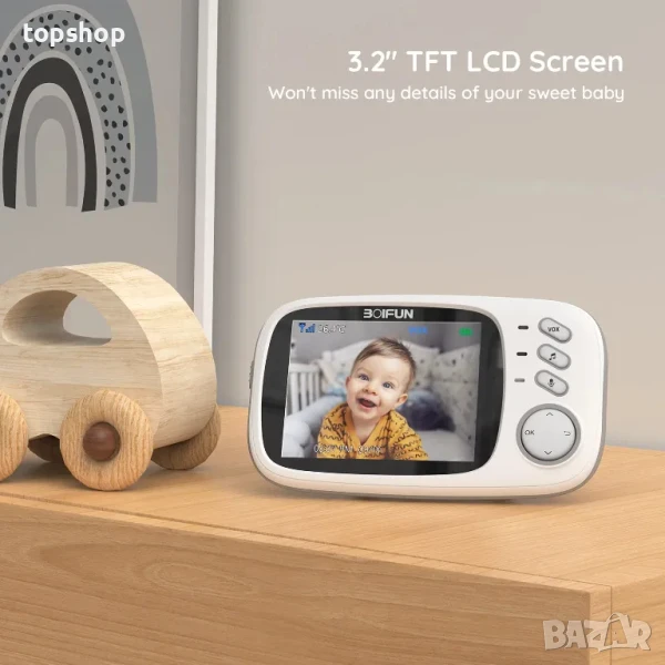 BOIFUN VB603 безжичен бебефон 3,2" HD екран, VOX режим, нощно виждане, двупосочен разговор, песни...