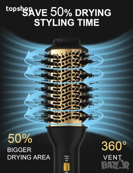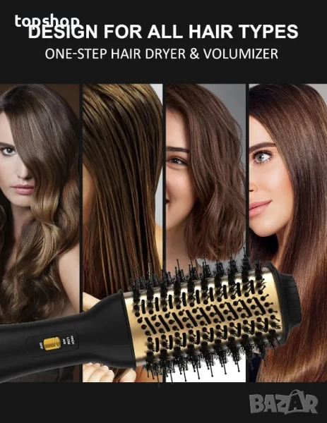 четка за сешоар Четка за сешоар IN One за стил, изсушаване и обем на косата ви в 1 стъпка, максимална мощност на сушене с 30% по-малко къдрене и помага за намаляване на увреждането на косата. Реши проблема, че повечето сешоари ще изсушат или дори изгорят косата ви