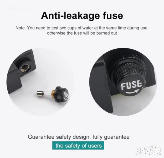 Не се препоръчва използването на уреда във вода с висока електрическа проводимост, напр. солена вода. В този случай съществува риск от безопасност при изгаряне. Ако трябва да смените предпазителя, използвайте МАКСИМАЛЕН предпазител 3A.