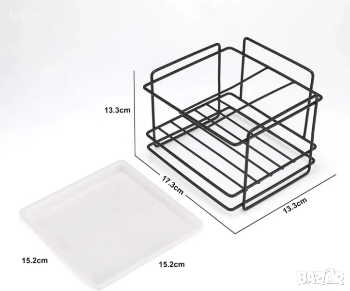 НОВ държач за кухненски прибори, метален, за кухня и баня с корито за оттичане, лепиенка за залепване, 17,3 x 15,5 x 13,3 см, черен