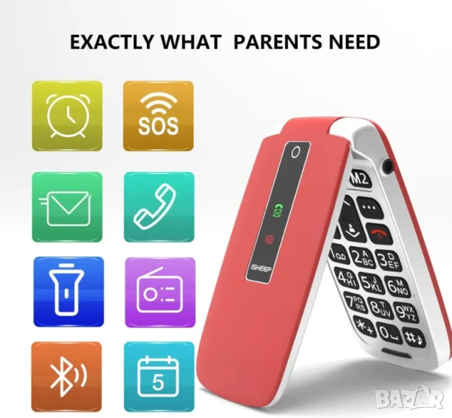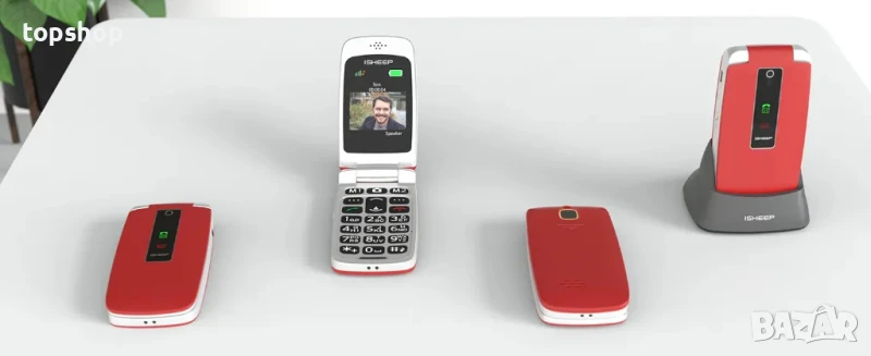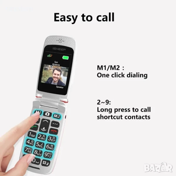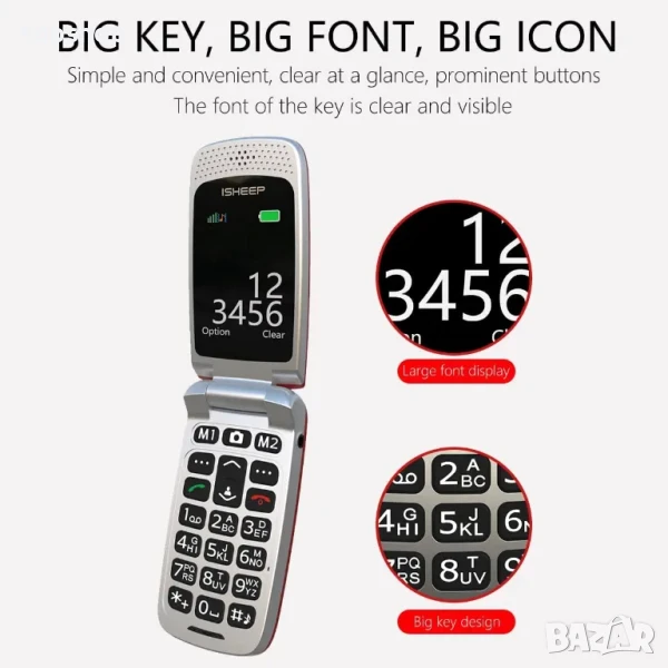 НОВ, запечатан isheep SF213 GSM разгъващ се мобилен телефон за възрастни, отключен с големи бутони..