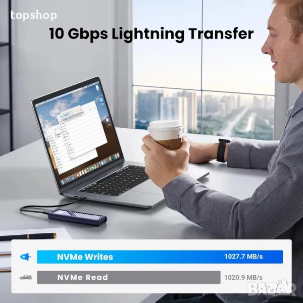 10Gbps бърз трансфер: Този NVMe корпус е оборудван с USB 3.2 Gen 2, поддържащ UASP, който може да постигне до 10Gbps скорост на трансфер. Скоростта на запис на файлове е 1027.7 MB/s, а скоростта на четене е 1020.9 MB/s. Обратно съвместим с USB 3.1 и USB 3.0