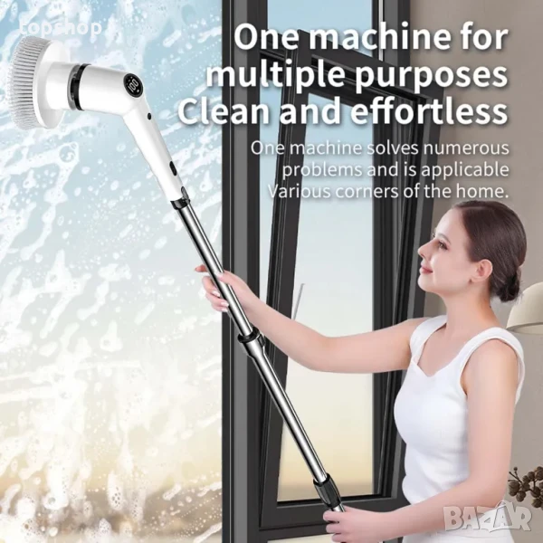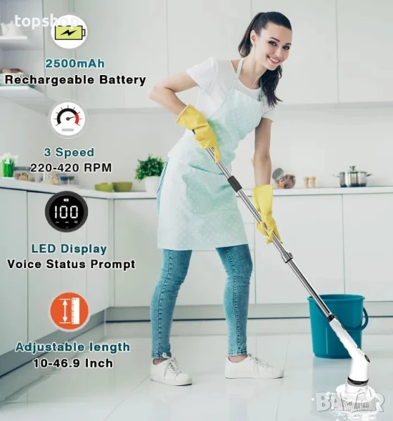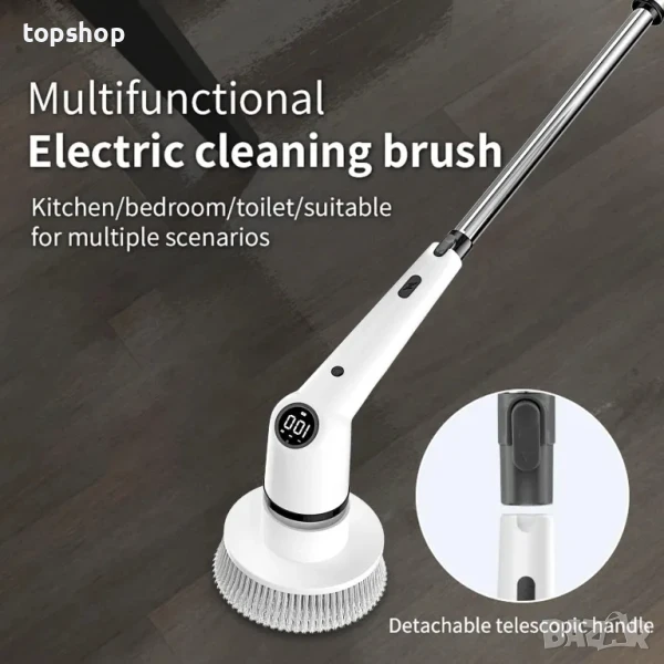 ЧИСТО НОВ MGLSDeet 9 в 1. Електрически скрубер, акумулаторна четка за почистване с 9 сменяеми глави, безжичен преносим мощен скрубер, за почистване на плочки, мивка, прозореци, под, кола.