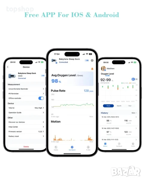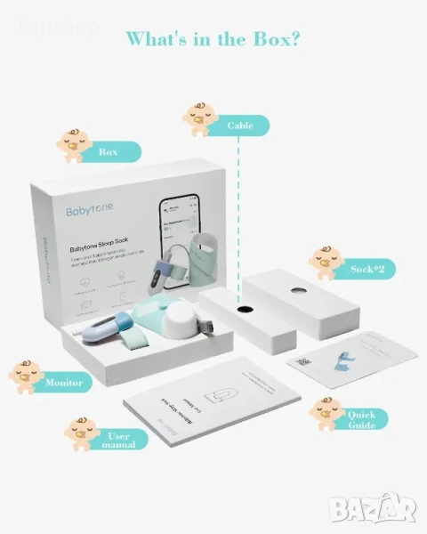 НОВ Чорап за наблюдение на бебе Babytone, за бебешки сън, проследяване на сърдечната честота, нивото на кислорода и движението, Монитор за краче с APP Bluetooth приложение от 0-36 месеца