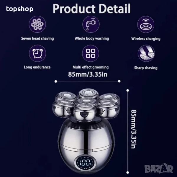 【Ергономичен дизайн】Ергономичната планетарна форма за мъже има специална гладка повърхност, предлагаща по-добро усещане за ръка, повече увереност и лекота на използване, осигурявайки по-гладко и интуитивно бръснене на главата и лицето ви.