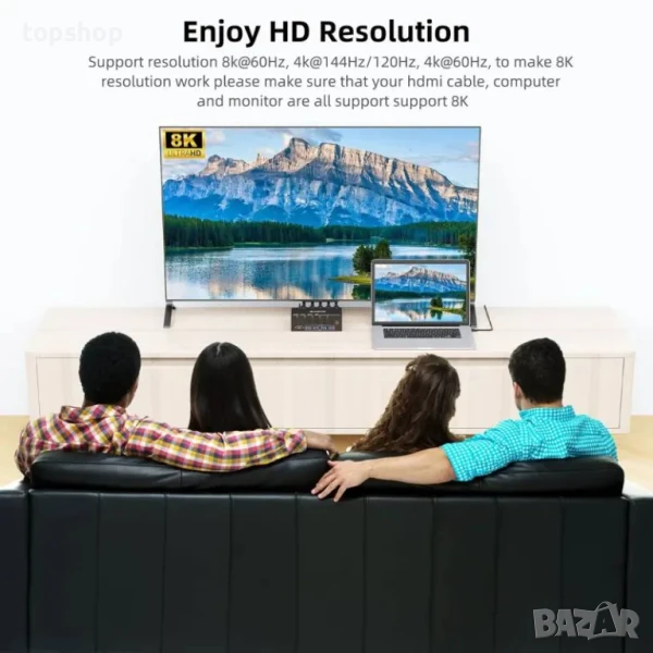 Моля, използвайте HDMI 2.0 кабели (дължина на кабела не повече от 1,5 м), ако вашето устройство извежда 8K резолюция и се уверете, че вашите компютри и монитори също поддържат 8K.