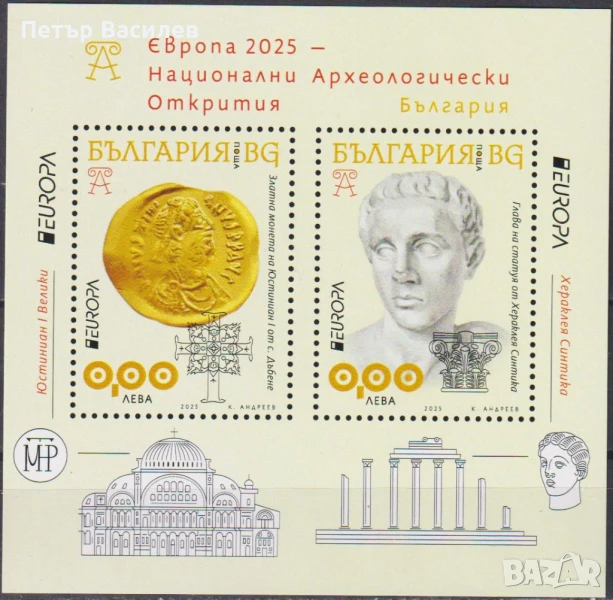 1. Чисти марки (2) Европа СЕПТ 2025 от България. Тираж 11700. Цена € 3,60 (сн. 1)