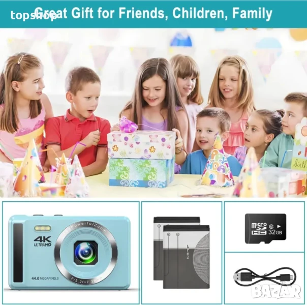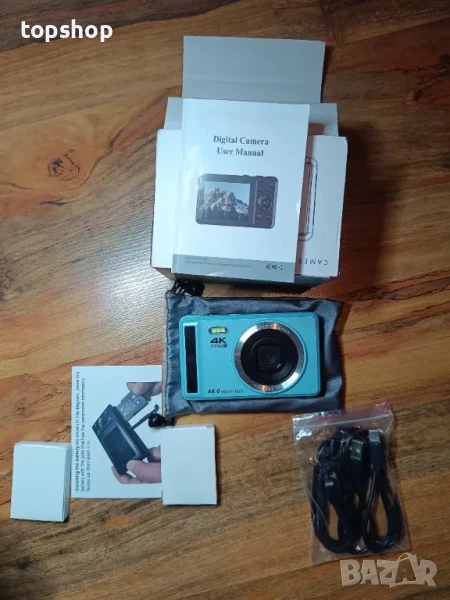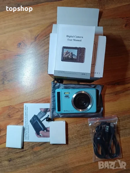 НОВ фотоапарат 4K FHD 44MP компактен с автофокус и 16X цифрово увеличение, с 2 батерии 2.4” екран, 32GB карта с памет