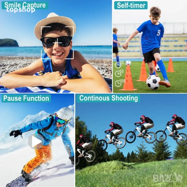 【FHD 4K видео и 44MP фото резолюция】 Компактната камера използва 13-мегапикселов CMOS IMX214 сензор с максимум 44 милиона пиксела. Видео резолюцията може да достигне до 4K при 30FPS, което ви позволява да заснемате невероятно ясни видеоклипове и снимки. Цифровият 4K фотоапарат разполага с функция за автоматично фокусиране, осигуряваща резки и ясни изображения при снимане на обекти на разстояние от 3,93 инча или повече. Освен това камерата има бутон за пауза, който ви позволява да поставите на пауза записа по всяко време по време на видеозаписа.