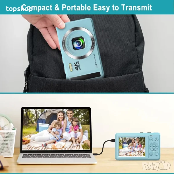 【Камера за Vlogging като уеб камера】 Цифровият фотоапарат може да се използва като уеб камера, като го свържете към компютъра с USB кабел, което ви позволява да се наслаждавате на видео разговори в Skype или стрийминг на живо в Tiktok, YouTube, Facebook или други социални медийни платформи. USB 2.0 кабелът гарантира, че можете да зареждате