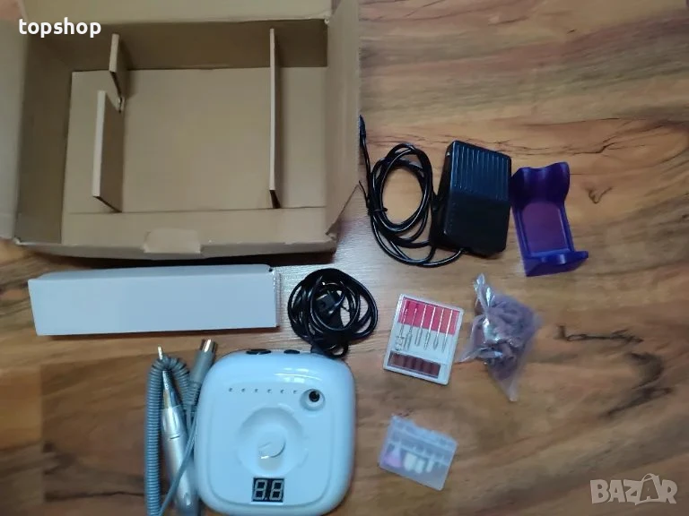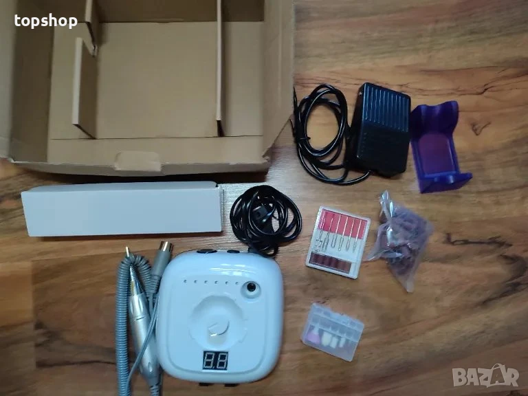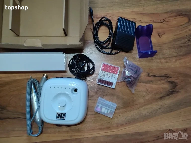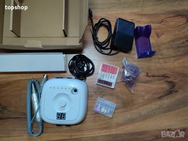 НОВА ПРОФЕСИОНАЛНА пила за нокти NAILGIRLS Т17, 11 в 1 Комплект пили за нокти, Професионална 35000 RPM за акрил, полиране , маникюр, педикюр в дома и салона с крачен педал, бяла