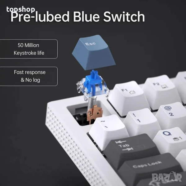 ПРЕВЪЗХОДНО ИЗЖИВЯВАНЕ С МЕХАНИЧНА КЛАВИАТУРА - Синият превключвател осигурява тактилна обратна връзка със звуково щракване при активиране на клавиша. Предпочитан от писатели и тези, които ценят потвърждението за натискане на клавиша. Предварително смазани превключватели и стабилизатори подобряват усещането и производителността на клавишите.
