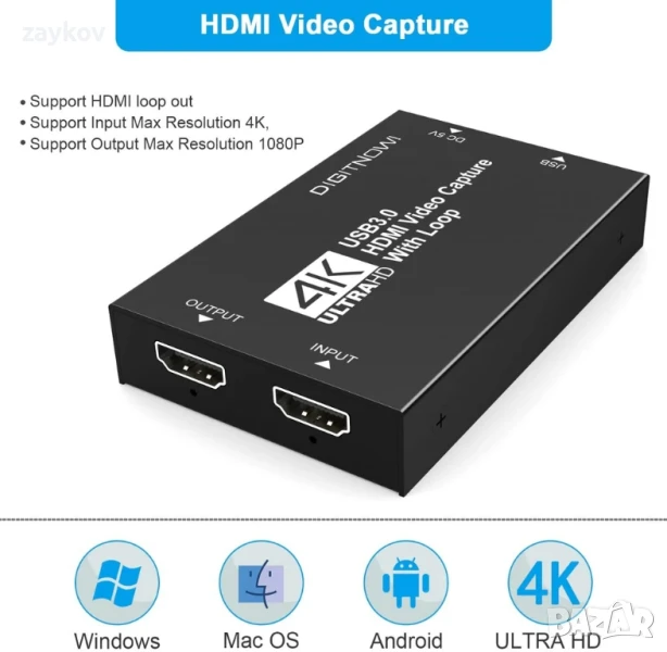 Plug and Play: Лесен за употреба. Не се изисква драйвер, външно захранване, компактен и преносим. Просто свържете вашите HDMI устройства към вашия компютър или Mac за лесен запис. Идеален за предавания на живо, конферентни зали, видеозапис и др.