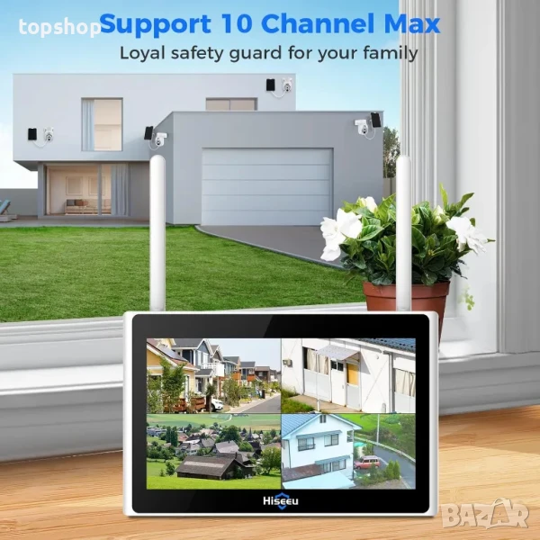 10-канален монитор и 1TB твърд диск -- Hiseeu CCTV системи с камери, захранвани от слънчева енергия, с 10" HD 10-канален монитор, говорете директно с хората през монитора. Включеният 1TB твърд диск осигурява достатъчно място за съхранение на видео кадри и улеснява архивирането на записите на вашия компютър. (Слънчевите камери не поддържат 24/7 запис)