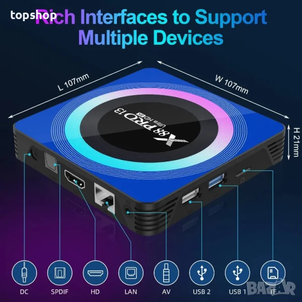 TV Box, X88 PRO 13 Android Box с 4GB RAM 32GB ROM RK3528 Quad-Core поддръжка WiFi6 2.4Ghz/5.0Ghz 8K HD BT 5.0 H.265 декодиране Smart TV Box