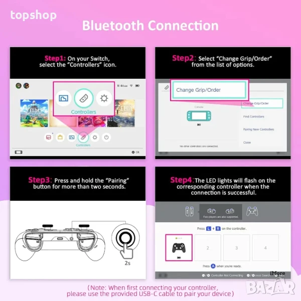 【Bluetooth връзка】 Контролерът се сдвоява удобно с вашия Switch чрез Bluetooth.
