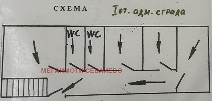 📌Първия етаж се състои от коридор, четири стаи/офиса, мъжка и женска тоалетна.