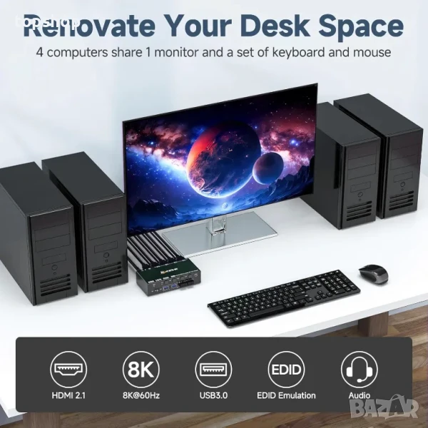 НОВ, тестван KVM Switch KVM8401BA - 8K или 4K до 4 компютъра - 1 монитор / 144Hz