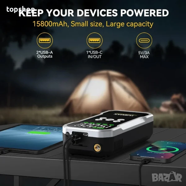 НОВ, ТЕСТВАН, ПЕРФЕКТЕН YUSMAN F03 5000A Джъмп стартер,
