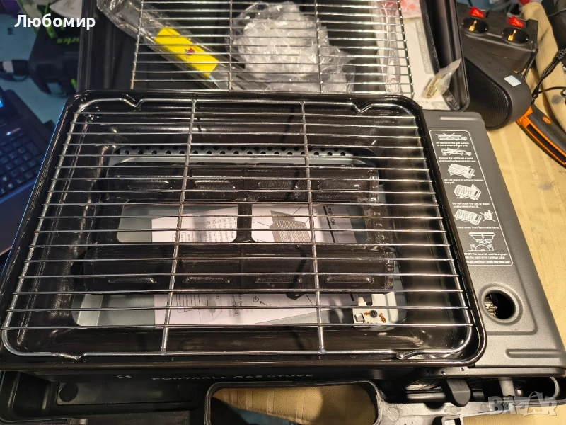 за къмпинг, грил с грил, тиган за грил, щипка за тиган за барбекю - Преносима къмпинг печка.Двойна употреба: включва два аксесоара, тава за печене и решетка за тесто. Може да се използва бутилка с бутан или да се свърже външен маркуч чрез интерфейса pagoda.Пиезоелектрично запалване - Пиезо запалването елиминира необходимостта от използване на запалки/кибрит за запалване на пламъците.