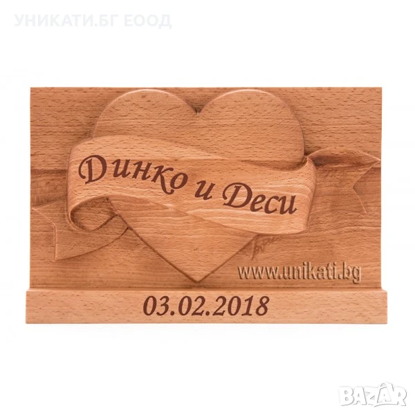 Потопете се в свят на емоции с ръчно изработени дървени подаръци, създадени с внимание, прецизност и много любов. Всеки артикул е уникален - създаден не просто за украса, а за да носи спомени, чувства и смисъл. Подходящи както за романтична годишнина, така и за кръгъл юбилей, нашите дървени изненади ще направят всеки специален повод още по-запомнящ се.
