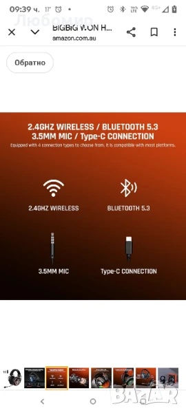 BIGBIG WON HALO PRO 2.4GHz безжични геймърски слушалки за PC, PS5, PS4, Switch, Bluetooth 5.3 геймърски слушалки с микрофон за шумопотискане и 35 часа батерия, 3.5 мм кабелен режим за Xbox Series X|S.Безжичните геймърски слушалки BIGBIG WON HALO PRO са оборудвани с 4 вида връзка. 2.4GHz безжичната връзка е съвместима с PC, PS4, PS5 и лаптопи. Bluetooth 5.3 връзката е съвместима с мобилни телефони, PC, таблети и други устройства с Bluetooth аудио функция. 3.5MM кабелна връзка към Xbox One контролер и други устройства с 3.5mm аудио + микрофонен жак. Type-C кабелната връзка поддържа PC и лаптопи. Наистина многофункционални геймърски слушалки.Безжичните геймърски слушалки се предлагат с 2.4GHz безжичен приемо-предавател, който осигурява предаване в реално време, подобно на кабелни слушалки. Той може да осигури незабавно предаване, което означава, че няма да усетите никакво забавяне, докато играете игри или чатите със съотборника си. Bluetooth 5.3 е обновен от Bluetooth 5.2, за да постигне ултраниска латентност дори на разстояние от 10 метра.Геймърските слушалки BIGBIG WON HALO PRO с Bluetooth имат вградени високопрецизни 53 мм драйвери, които подобряват чувствителността на високоговорителя, с авангарден дизайн за по-ярък и ясен звук с по-богати високи и по-мощни ниски честоти, което ви кара да усещате ясно гласа на посоките, стъпките и всеки детайл в игрите за по-добро завладяващо игрово изживяване.Безжичните слушалки с микрофон използват акумулаторна батерия от 1000 mA, която ви позволява да играете игри до 35 часа. Необходими са само 2,5 часа, за да се заредят напълно безжичните слушалки с USB-C кабел за бързо зареждане. Никога не се притеснявайте за изтощаване на батерията по време на игра.