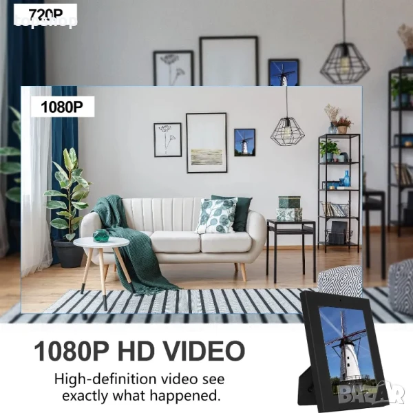 【1080P HD камера】Нашата камера с фоторамка осигурява ясен и ясен 1080p висококачествен видеоклип, улавящ ефективно детайлите на сигурността на вашия дом и офис, като ви дава по-добро изживяване при гледане на запис.