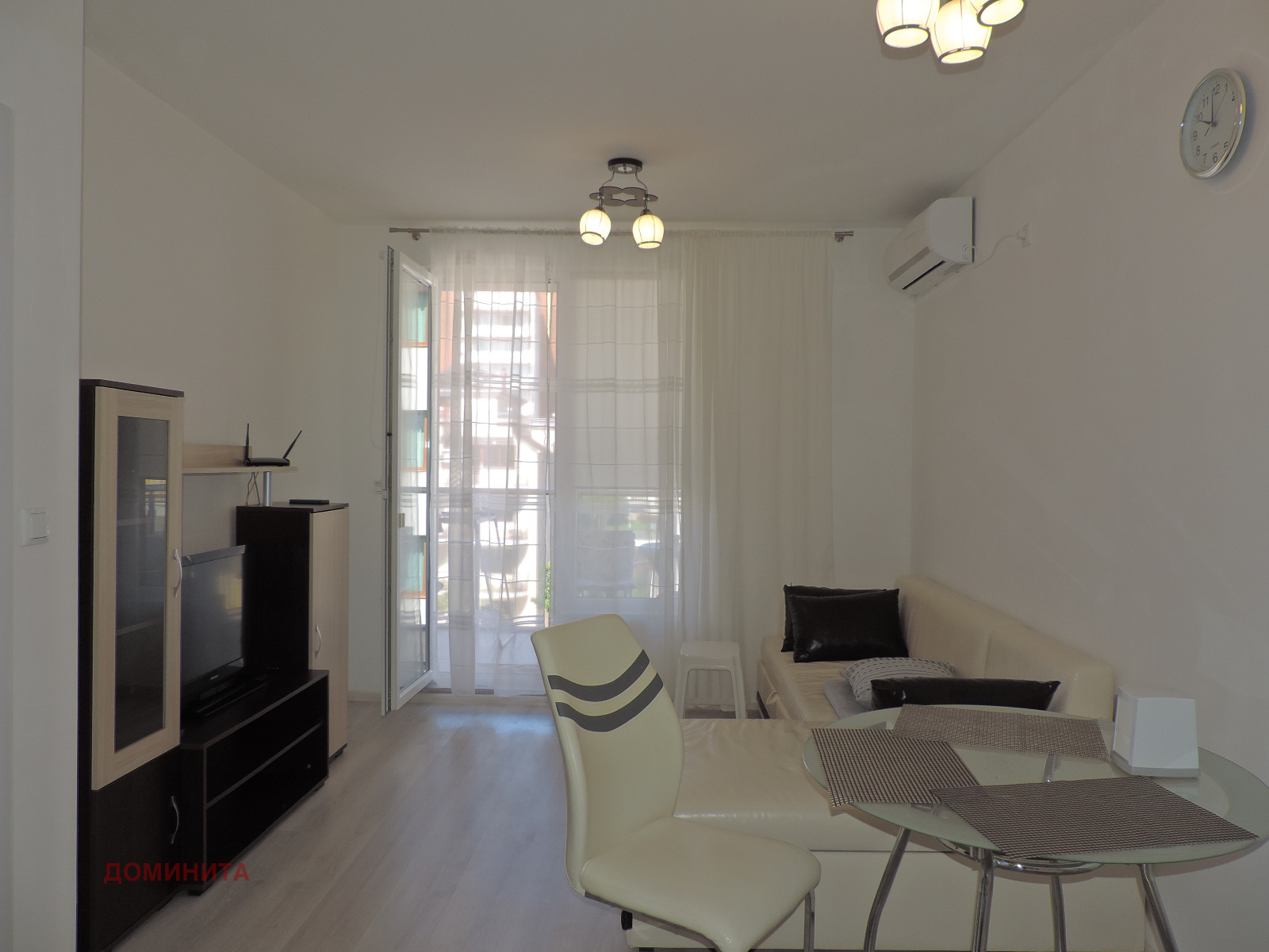 Климатик в дневната. Разтегателен диван.
