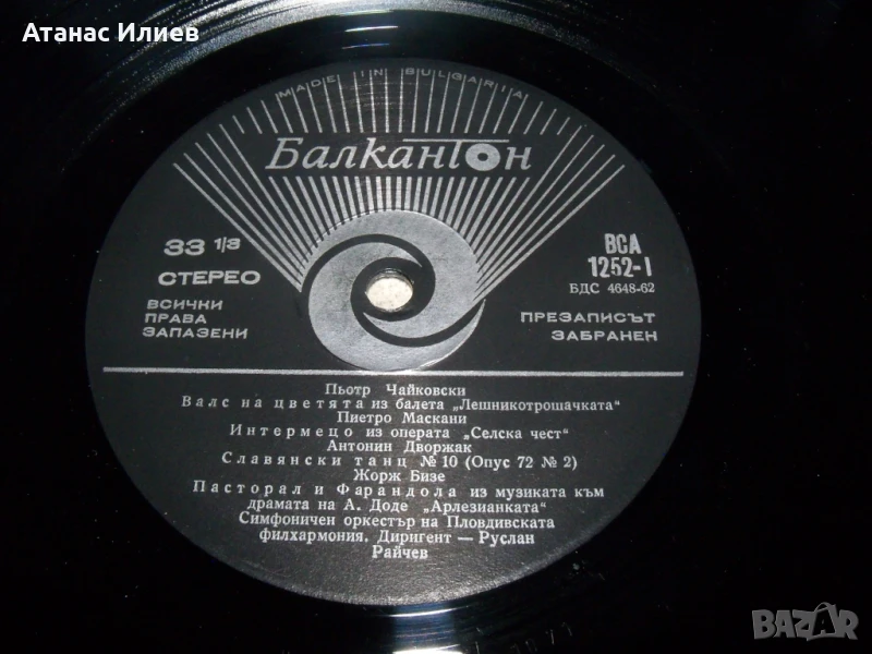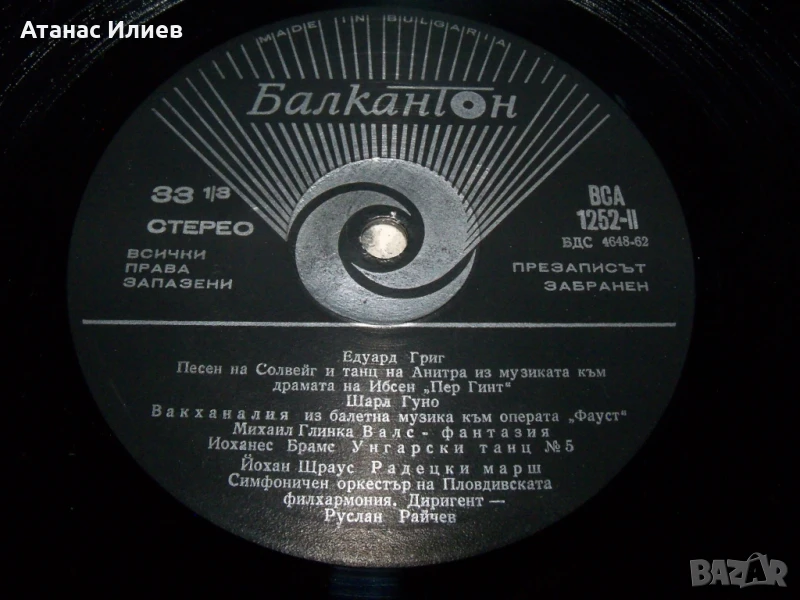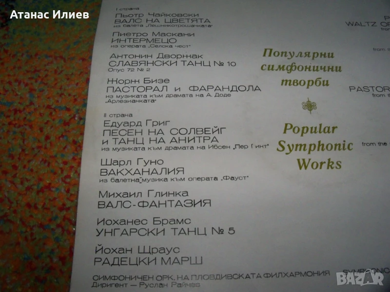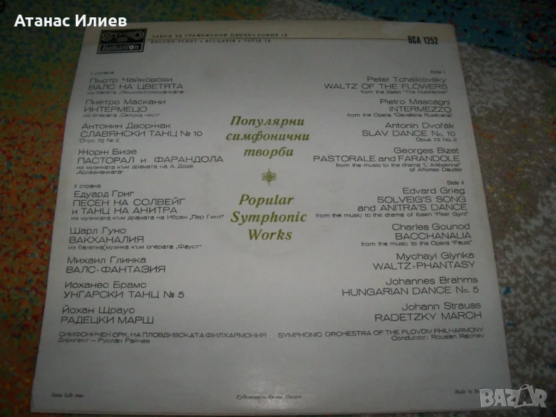 Популярни симфонични творби, ВСА 1252. Плочата е прослушана и е в отлично състояние.