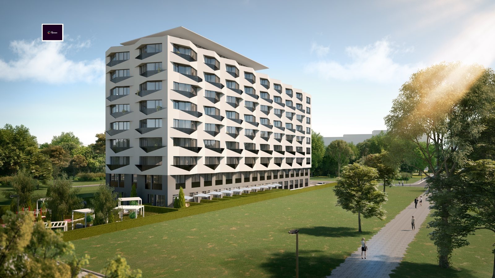 В сградата има налични едностайни апартаменти с двор, двустайни и тристайни апартаменти както и подземни паркоместа.