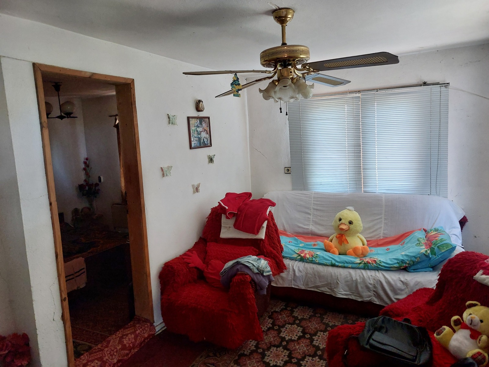 Къща на два етажа изцяло плоча баня кухненско 1,5 декара двор от които 1 е с гледано лозе 2 бр герани климатик 2200 лв хидрофор къщата може да се даде и на изплащане уговорка
