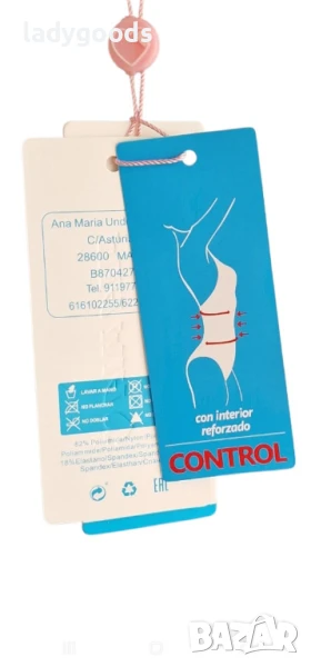 Стяга фигурата ,в талията и корема. На гърба се връзва,това дава възможност за корекция на подгръдната обиколка.Размерите са от 44 до 52.Размер 44(на
