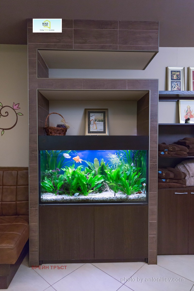 Интериорът е проектиран с вкус и внимание към комфорта мебели от висок клас, ротангови детайли, топла цветова гама и професионално осветление. Помещенията са климатизирани, вентилирани и технически обезпечени, което осигурява високо ниво както за клиенти, така и за персонала.