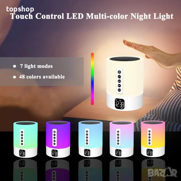 Bluetooth колонка XSY330 + Многоцветна нощна лампа + Машина за бял шум ( 14 вида ) + Будилник