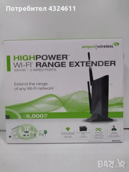 Amped Wireless SR300 е мощен WiFi ретранслатор (усилвател), създаден да разшири обхвата на съществуваща безжична мрежа и да елиминира „мъртвите зони“ в дома, офиса или на работното място. Със скорост до 300 Mbps и съвместимост с всички 802.11 b/g/n безжични рутери на 2.4GHz, този уред осигурява по-силен сигнал и стабилна връзка, дори в отдалечени помещения.