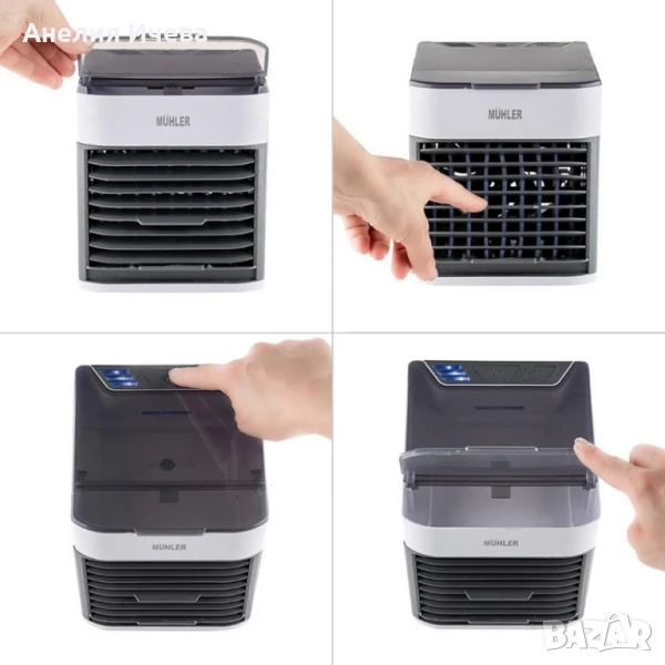 Компактен настолен охладител MUHLER MC-585 с овлажнител, LED светлина и USB захранване