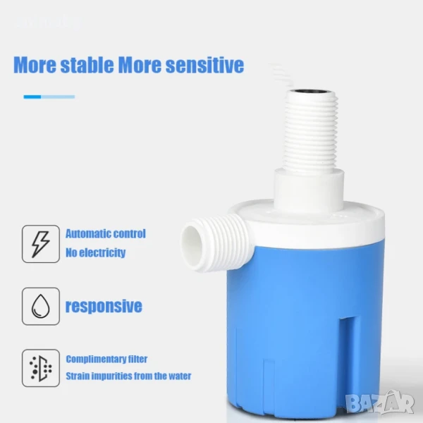 Този вентил е заместител на традиционния поплавъчен кран и може да се използва в различни системи от резервоари за вода, басейни, водни кули за промишлеността и гражданското строителство и др. Автоматично управление, ниско самодопълване на водата, пълно автоматично спиране на водата. Красив външен вид, малък размер, практичен, лесен монтаж.